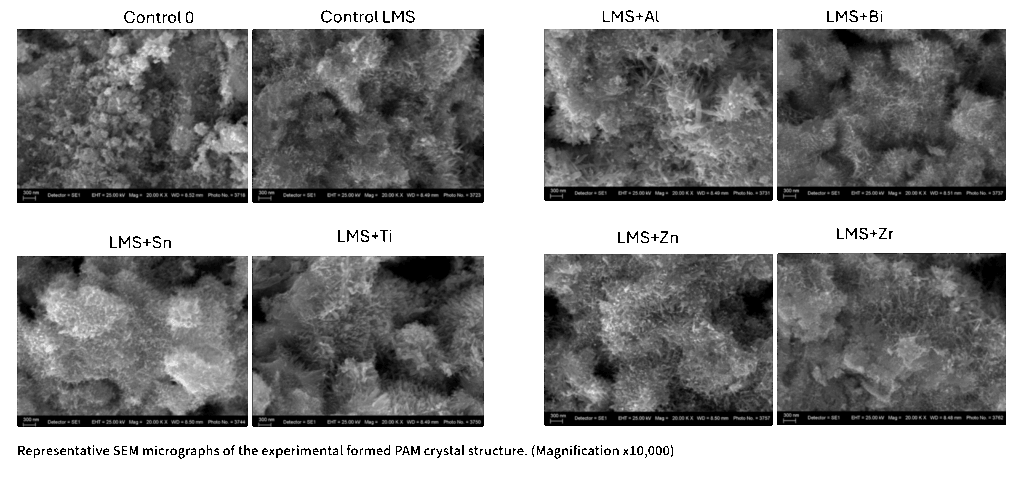 Promising additives are screened and characterised to determine their suitability, considering factors like chemical properties, impurities, cost, and manufacturing feasibility. Materials that pass this initial assessment undergo performance evaluations through experiments. These experiments analyse their impact on parameters such as paste density, curing time, and crystal growth, using small-scale 2-volt test cells.